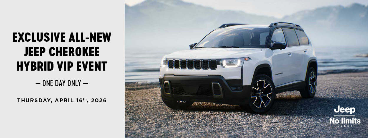 Join us for our Exclusive All-New Cherokee VIP Event on Thursday, April 16th, 2026 at Jim Pattison Chrysler Jeep Dodge Surrey as we showcase our All-New 2026 Jeep Cherokee Hybrid models.